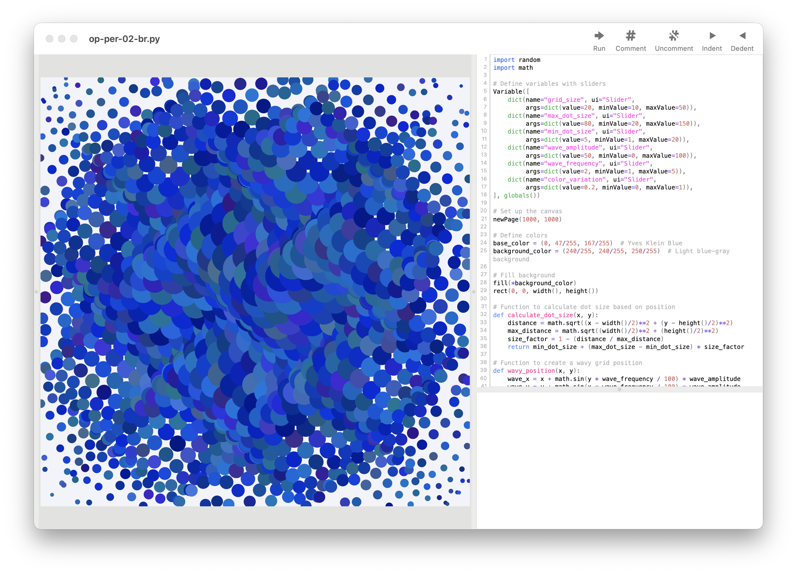 - Python/DrawBot. Raw bitmap render, the purest expression of the algorithm.